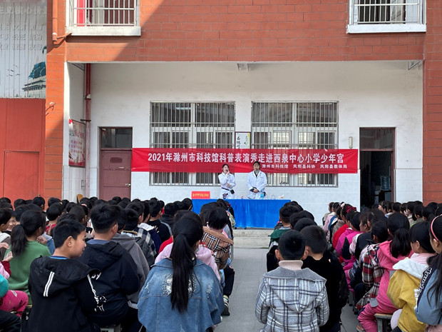 3月25-26日,滁州市足球365app_Best365官网登录_365bet网上手机投注关工委、滁州市科技馆共同举办的送科普进乡村学校少年宫活动先后走进凤阳县凤阳山学校和西泉镇中心小学,开展了科普表演秀、科普讲座等活动,两所学校的近1000名师生参与活动。 将科普表演融入送科技下乡活动是2021年滁州市科普工作的改进之举,实现了科普活动从重“展”到重“教”的转变。活动中,滁州市科技馆的科普表演秀在凤阳实现乡村学校少年宫首演,“不湿的彩砂”泡入水中捞出来还依旧保持干爽;“彩虹之水”水壶中的清水倒入不同的杯中呈现出不同的颜色,倒回一起又恢复无色;“水中捞针”可以隔空将水里的回形针取出;“消失的硬币”近在咫尺却难以发现是如何消失不见又如何神奇重现;“打不开的节”却栓不住小小的铁环。通过一个个神奇的实验,展教老师用“变魔术”的方法让同学们在观看体验过程中就学习到了化学、物理学、拓扑学等丰富的科学知识和原理。寓教于乐,让乡村学校的孩子们大开眼界、大呼过瘾。 活动还邀请了市疾控中心、市综合防控儿童青少年近视宣讲团成员黄卓君作《保护视力 远离近视》专题科普讲座,向同学们普及近视成因、危害以及预防措施,讲座内容设置了提问环节,答对的同学可获得精美礼物一份,大大激发了同学们的学习热情。通过讲座,同学们保护视力的意识和能力均有所增强。